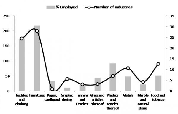 The location quotient shows that both the construction and the tertiary activities are the most important activities in recent times. There is a dramatic growth in the number of buildings constructed in the whole the watershed, especially during the economic growth phase.