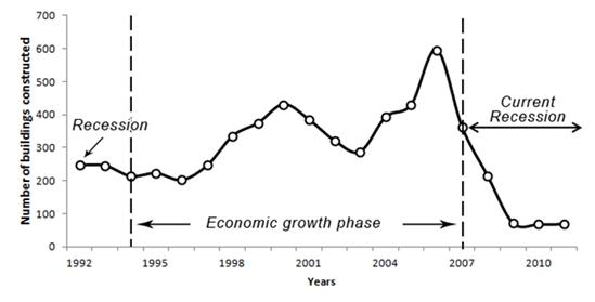 | Assessment | Economic growth is mainly supported by construction, where employment increases by 20% between 1994 and 2006. National and regional policies are facilitated by low interest rates and bank credit, fuelling increases in home prices and real estate speculation.