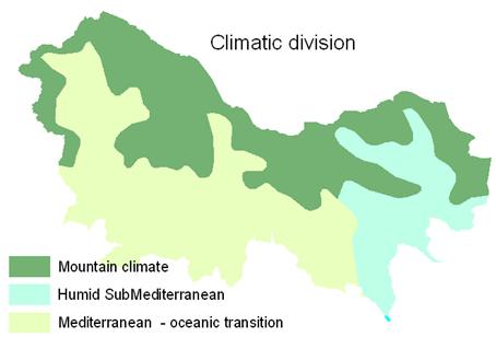 The complex topography and the diversity of aspects of the mountains offer an extensive variation of local climatic shades. Nevertheless, based on the pluviometric distribution and on the more or less continental character, we can differentiate in the Central Pyrenean study area three zones; mountain, humid sub-mediterranean and mediterranean (oceanic transition) climates.