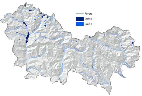 The main rivers are the Gallego, Ara and Cinca, which feed into the Ebro river, in a North-South direction. Maximum flows occur in May and June and lowest in August and September.