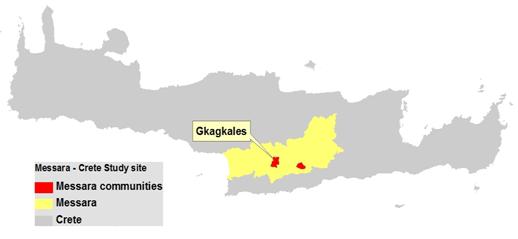 Gagales is one of 72 settlements of the Messara area and forms part of the Municipality of Gortyna. It is a community of 605 people, remaining relatively stable during the last 50 years. Population ageing rates are higher for Gagales, than for the rest of Heraklion and the values of dependency indicators point to dramatic ageing and increases in the non-active populations.