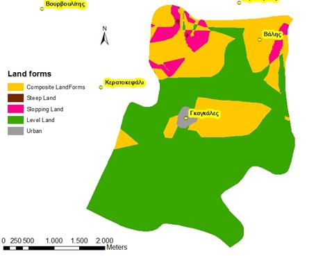 Topography The area’s altitude class is 200-400 m, with flat areas covering 32.9%, south-facing slopes 56.7% and north-facing slopes 10.4% of the total area. Slope gradients are predominantly less than 8% although moderate slopes covering an 34% of the area. Sloping land with dominant slopes between 8% and 30% is mainly located in the northern part of the community, covering 4.8% of the total area |