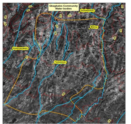 Hydrology Water bodies of Gagales community include four water channels, all tributaries of Geropotamos River. They are ephemeral channels carrying water during winter and early spring. The main source of irrigation water is the Messara Valley groundwater. |
