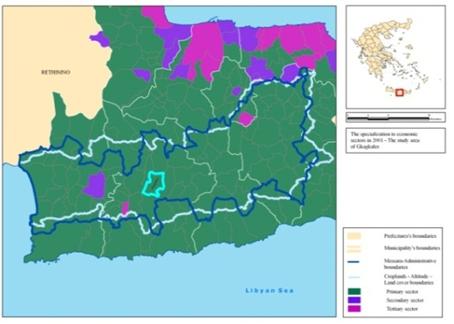 The local economy is mainly based on agriculture, as the area is intensively cultivated with olives, vines and vegetables. The community has strong economic interrelations with the nearby villages of Gortys, and Tympaki. The main LEDD problem of the area is soil erosion and land desertification exacerbated by the community’s hillside location. |