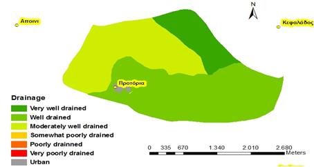 {tip ![]() Spatial distribution of soil drainage classes in the Protoria community. Source: LEDDRA project} {/tip} |