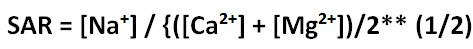 The criteria for irrigation water quality are low salinity or low ratio of Na+ to Ca²+ Mg²+ to prevent the development of salinity or sodicity. The parameters usually used to characterize the quality of irrigation water are electrical conductivity (EC) and the sodium adsorption ratio (SAR) which is defined as follows (Rowell 1995): (a) Salinity risk