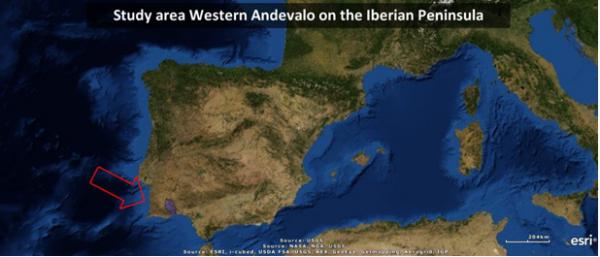 The Western Andévalo study site area is located in Huelva, the westernmost province of Andalucía, Spain. It borders with Portugal on the west and the province of Seville to the East. To the north lies the Extremadura, and to the south is the Atlantic Ocean. |