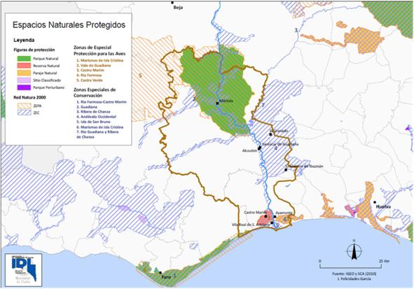 Ecosystems in the area include Forest, Sub-humid semi-arid dryland, Cultivated and Urban. With regard to biodiversity, Western Andévalo includes several protected areas, national parks and natural reserves, while the estuary of the Guadiana is also a RAMSAR site.