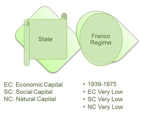 | Assessment | The most critical component is the political regime which operates at the national and higher SES level. It dominates and overshadows all aspects of social and economic life. The political focus is put on making the transition form an agrarian to an industrial state. Rural Western Andévalo witnesses a great exodus and cities grow. However, after the closure of the mines, the economic condition is very poor and the low natural capital set strict limits on possible income from agriculture.