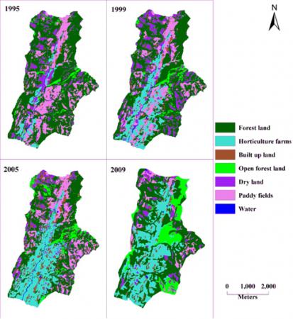 - During 1995-1999, the area of forest and paddy field decreased, while all other uses increased, particularly horticulture farms.