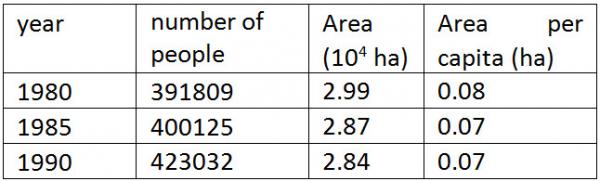 | Critical functions | In this period, several water conservation projects are implemented, particularly relating to ground water. Although 16 drought disasters occur between 1979 and 2005, their effects are limited. Crop productivity has not been measured directly. During the period, area under grain cultivation is reduced, but the yield per ha and total grain yield rise sharply, owing to chemical fertilizer use and the enthusiasm of local farmers to labour. The yield per hectare of the oil crops (rapeseed, sesame, peanut) shows great variations owing primarily to climate conditions.