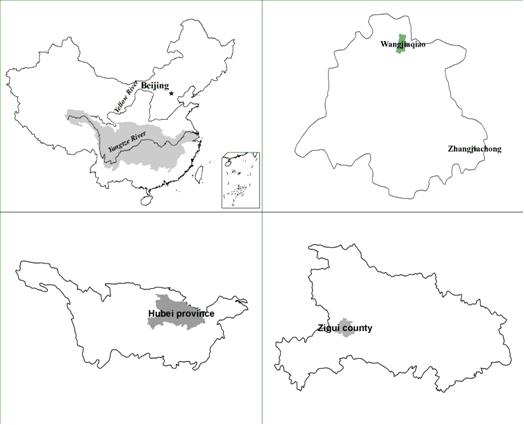 Zigui county is located in the west of Hubei province, at the head of Three Gorges and the side banks of Xiling Gorge that is one of three gorges. It covers an area of 2.427 km², with a length of 66.1 km from east to west and 60.6 km from south to north. It includes 186 administrative villages and 6 committees. Because of the reservoir of the Three Gorges Dam Project, part of the Zigui territory has been submerged. Since the establishment of People’s Republic of China, and following the announcement of the land reclamation policy for Zigui County in 1959, 38.5 thousand people have taken part in this action, treating 104 hills and reclaiming 11.1 thousand hectares for agricultural use including 85.3 hectares upland for paddy fields, 42 water conservation projects and the planting of 0.32 million forest trees. Large public investments in terrace construction have also taken place since 1985 (9672 hectares of terraced fields) Farmland construction continues as it greatly improves productivity, but excessive land reclamation does cause soil loss and ecological disturbances. |