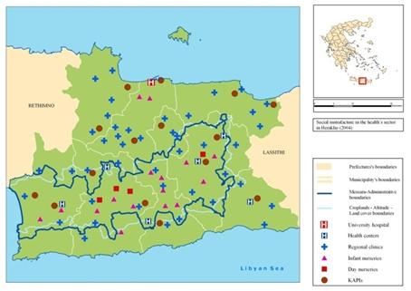 Education, health and social infrastructure is deemed adequate having undergone significant expansion during the last decade, primarily through the European Social Fund. The area is also serviced by the city of Heraklion. Infant and day care facilities operate in all municipalities. Several municipalities and the church operate facilities for the elderly including homes, day care centers (KIFIs) and services to the elderly at home. Family ties are also crucial for the support of the elderly. |
