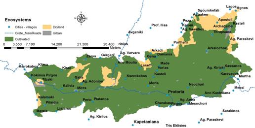 Messara is located in the central part of the former Heraklion prefecture and includes the municipalities of Phaistos and Gortynas (east), Archanes-Asterousia and Minoa Pediados (west) and Asterousia (south). The study includes 72 mostly flat municipal districts which until 1997 were self-governed municipalities or communities.