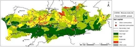 Critical variables | Annual soil loss due to water and tillage erosion in Messara Valley (a slow variable) is estimated between 0.01 mm to 9 mm depending on the land characteristics. Loss of soil in areas with consolidated parent materials (limestone, flysch, inter-bedded marls) can strongly affect plant productivity.
