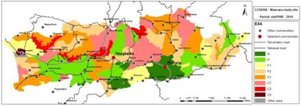 The water capital remains generally high, except in Messara's lower aquifer. Annual total water quantity in Messara Valley is estimated at around 555 Mm³, depending on amount and distribution of rainfall. Water quality is mainly high but problems of salinity have been identified in the coastal aquifer. Vegetation capital during the period increases and is generally high, as (low capital) cereals are now completely replaced by perennial olive trees. Climate capital remained moderate. |