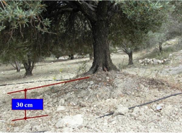 In older groves, tillage erosion is present in areas where mechanical equipment is being used, reaching losses of up to 50 cm during the last 40 years.